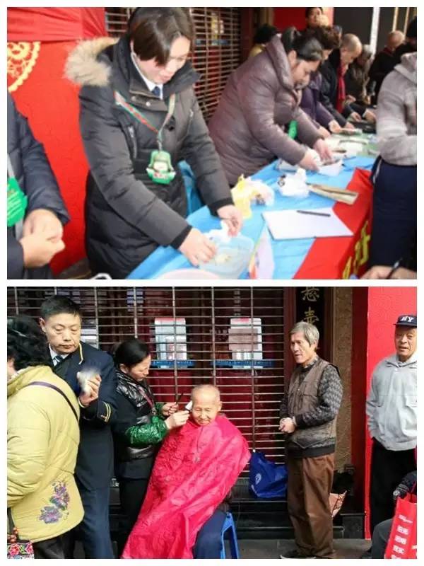 6:30分左右,所有的工作都已经井然有序地展开了。虽然仅有理发、清洗眼镜、量血压、塑封照片几个常规内容,但是每个月都有很多市民慕名而来。理发的阿婆经常是凌晨3点就从家中赶过来,塑封照片更是大排长龙。寒风瑟瑟,的哥的姐们通常都是贴着暖宝宝坚持为民服务。