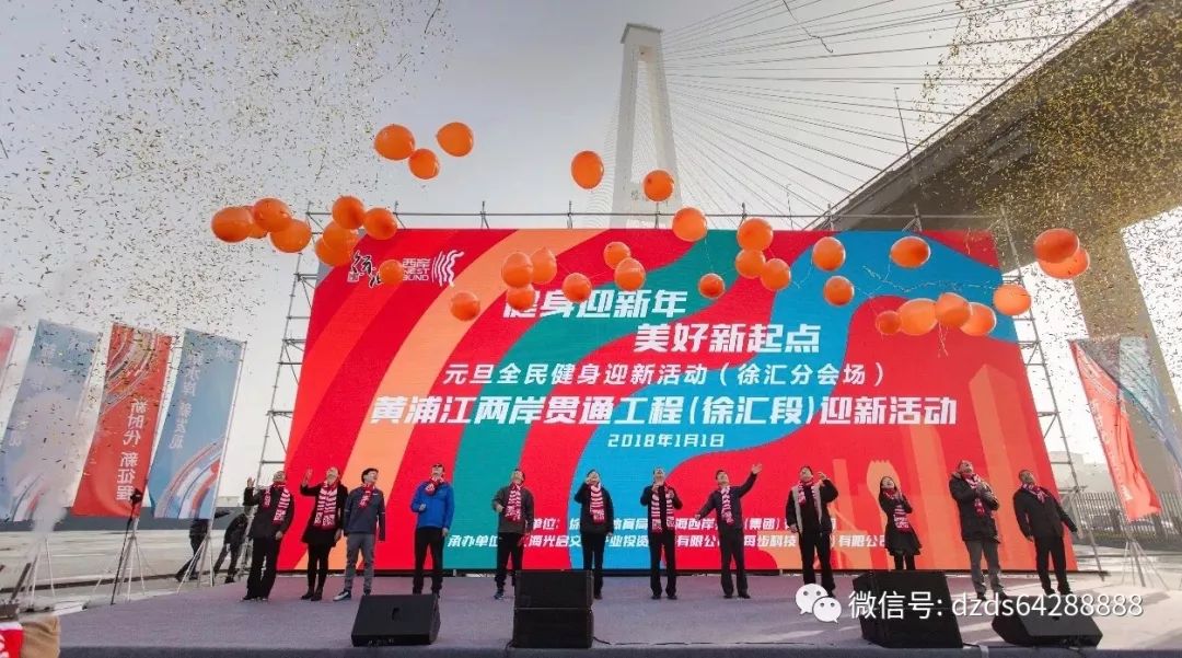 2018年元旦清晨,由徐汇区体育局和西岸集团主办的"健身迎新年·美好新起点"黄浦江两岸贯通工程(徐汇段)迎新活动,在徐浦大桥下徐梅路龙腾大道节点广场隆重举行。尊龙凯时交通(集团)旗下的"尊龙凯时滨江"参加了此次活动。