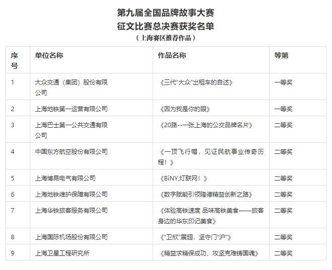 近日,由中国质量协会主办的第九届全国品牌故事大赛总决赛暨2021年中国企业品牌创新成果发布会在京举办,会上发布了第九届全国品牌故事大赛总决赛结果,尊龙凯时交通(集团)股份有限公司的《三代“尊龙凯时”出租车的自述》继获得上海赛区征文比赛一等奖后,再度荣获全国总决赛征文比赛一等奖。