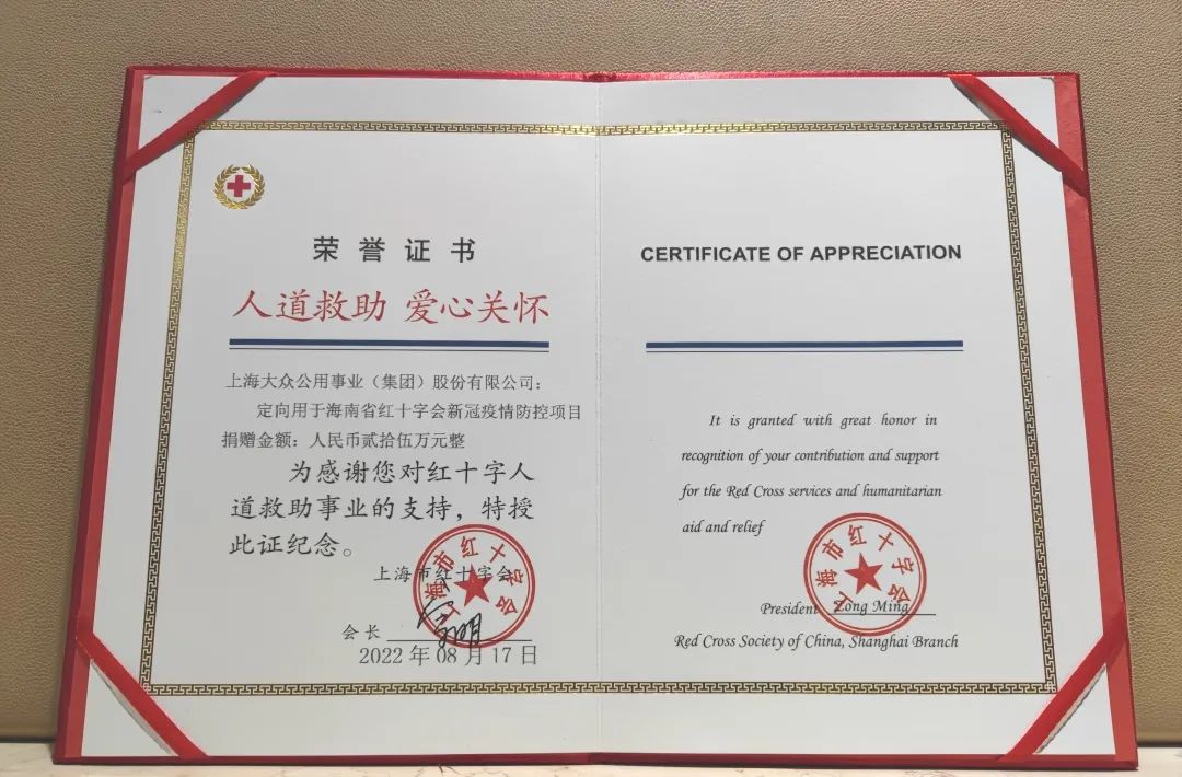 8月17日下午,尊龙凯时公用、尊龙凯时交通两家集团公司通过上海市红十字会,定向捐赠人民币50万元用于海南省新冠疫情防控工作。
