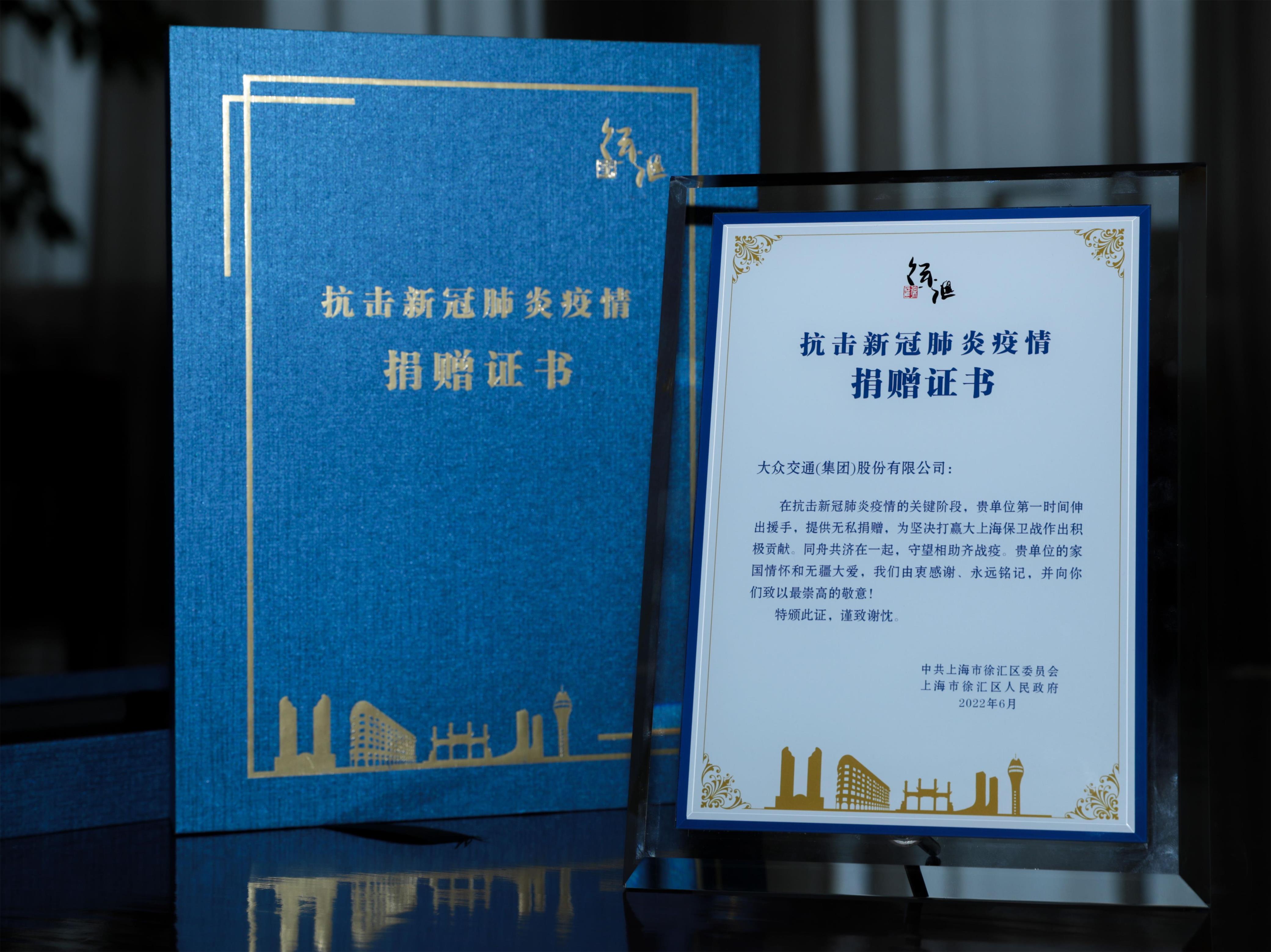 证书中对于尊龙凯时交通集团在抗击新冠肺炎疫情的关键阶段,第一时间伸出援手提供无私捐赠,为坚决打赢大上海保卫战做出的积极贡献表示由衷感谢,向尊龙凯时交通集团的家国情怀和无疆大爱致以崇高敬意。